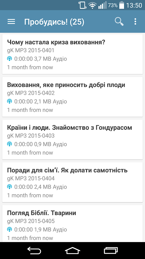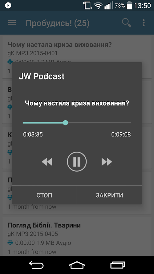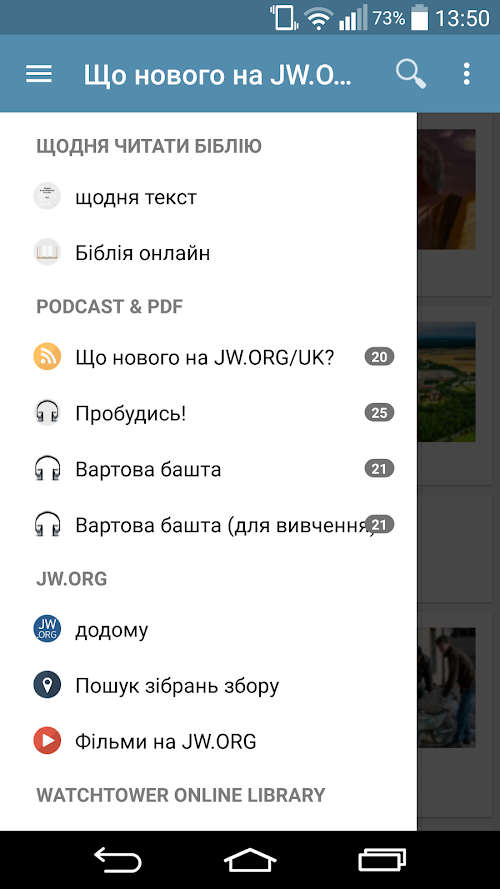 Ця програма дозволяє вам слухати свіжі журнали на вашому смартфоні або планшеті за допомогою подкасту. Крім того , ви легко отримати на офіційному сайті. Навіть Сторожова вежа Бібліотека в їх досягненні.