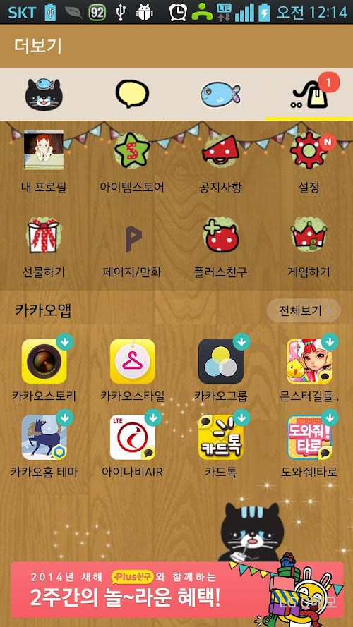 Two. KakaoTalk run / more items, click the settings / Theme settings Select Items