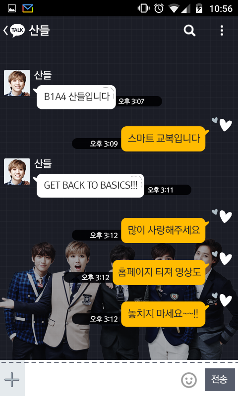 카카오톡 버튼을 클릭할 때 마다 B1A4가 방긋방긋♡