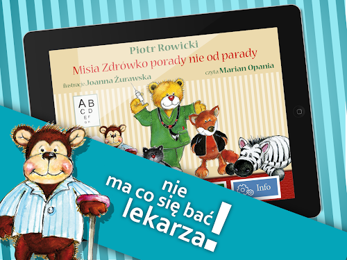 Miś Zdrówko to aplikacja dla najmłodszych dzieci (2-5lat) stworzona na podstawie książki Piotra Rowickiego „Misia Zdrówko porady nie od parady”.