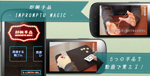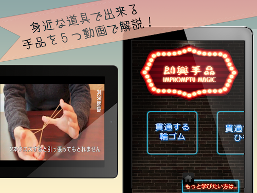 このアプリはその場にある道具だけで簡単に行うことが出来るマジックを豊富な動画で解説しています。このアプリに収録されているマジックは特別な準備やトランプなどの道具はいりません。