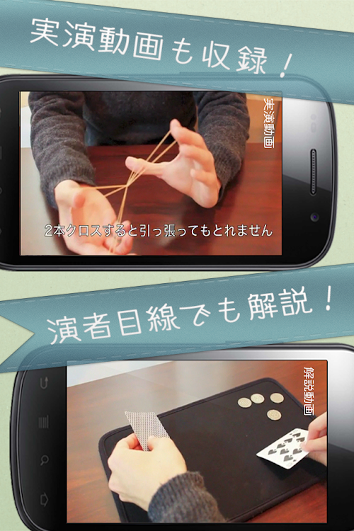 身の回りの道具を使うマジックは驚きが小さくなりがちですが、このアプリではインパクトの大きいマジックを厳選しました。
