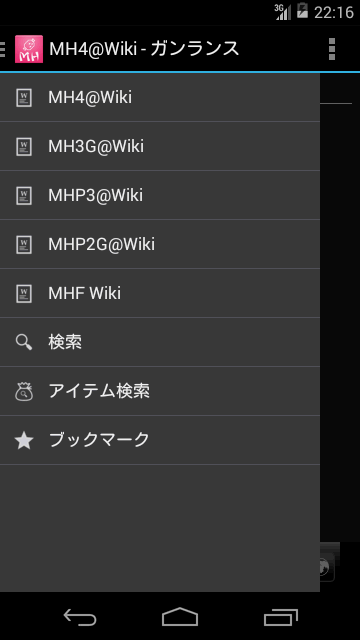Android 2.3.3 以上に対応し、以下の MH Wiki を表示することができます。