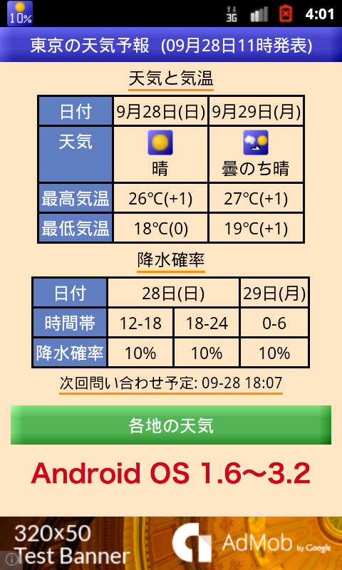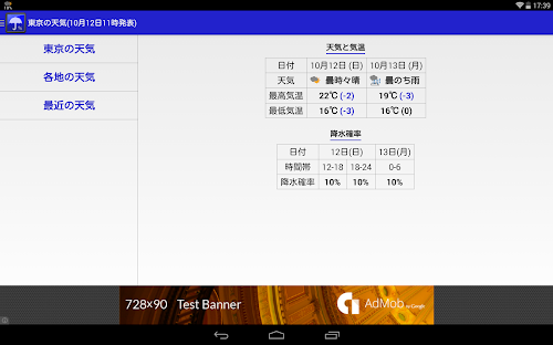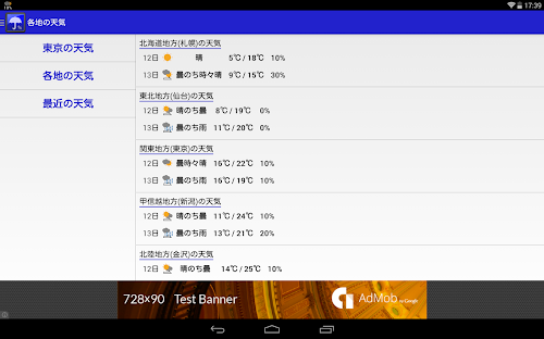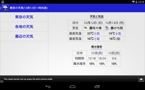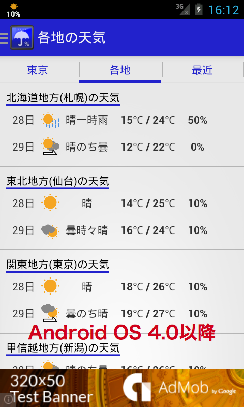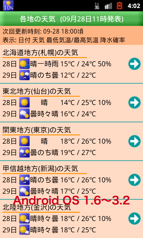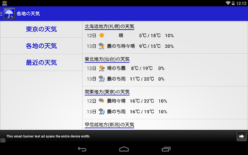 *アップデート後の挙動がおかしい場合、再インストールもしくはアンインストール→端末再起動→インストールをすると元に戻ることがあるそうです。This is shown in the status bar on the weather in the region that has been set, the probability of precipitation.