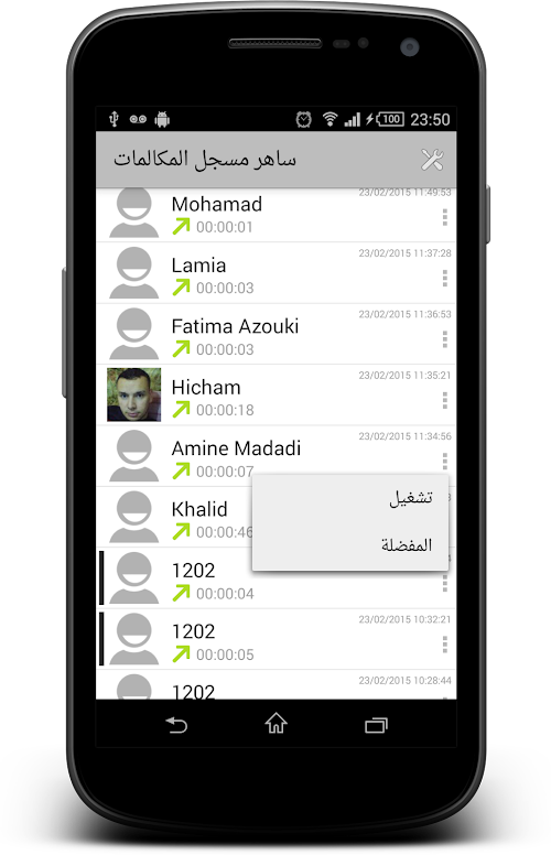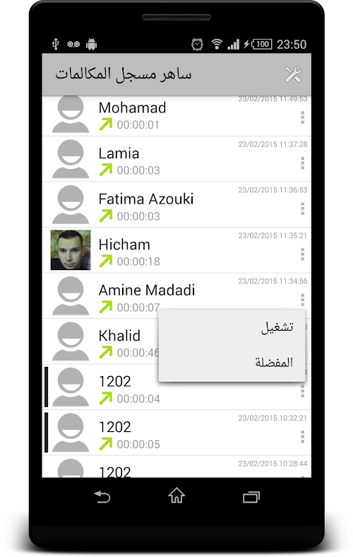 يمكنك المساهمة في تطوير تطبيق saher call recorder عبر كتابة ملاحتظاتك والتصويت بخمسة نجوم. All telephone calls enregistrement Appel incoming and outgoing from your mobile phone record various format such as mp3 and mp4 and 3gp and keep it on your phone or on a different cloud storage services, Saher Arabic Free application for recording phone calls voice HDTV automatically without intervention from you.