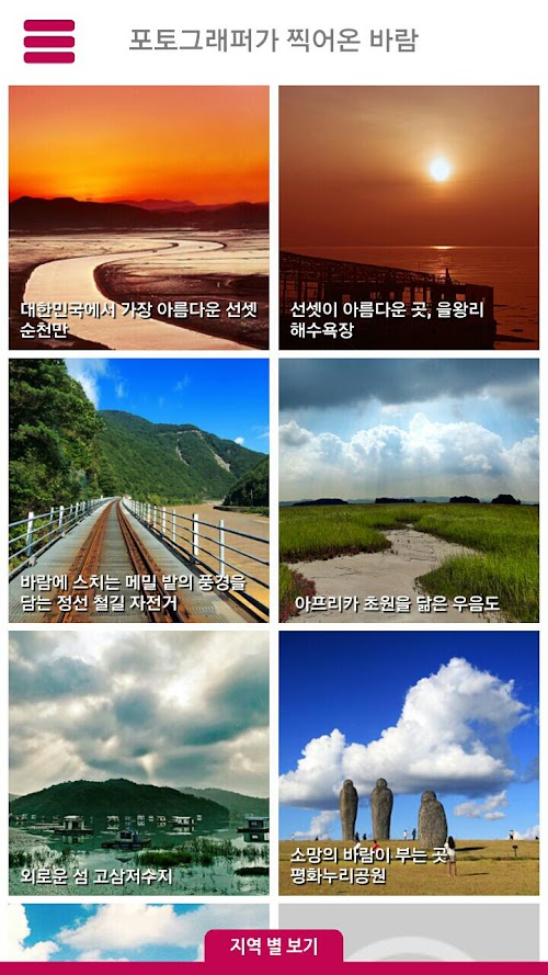 - 지역검색: 바람이 좋은 장소, 지역별로 검색 가능