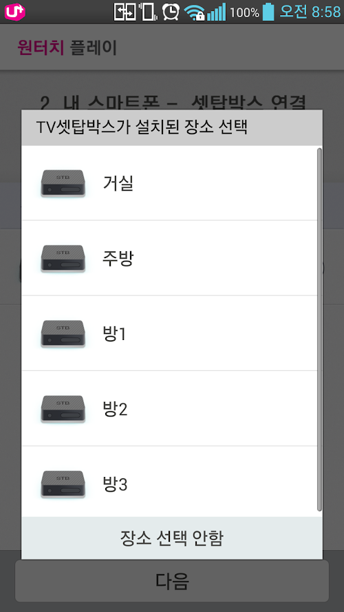 2) 스마트폰의 화면을 U+tv G 화면에서 그대로 보여주기