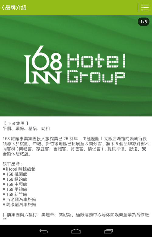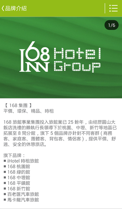 本應用程式為 168旅館事業集團專屬行動應用程式,提供各項便利功能供下載使用。