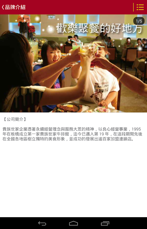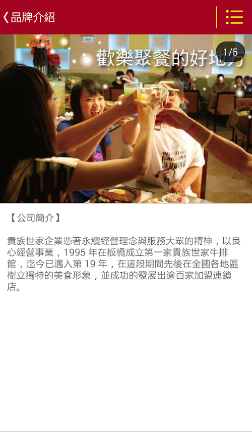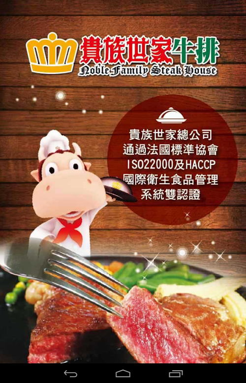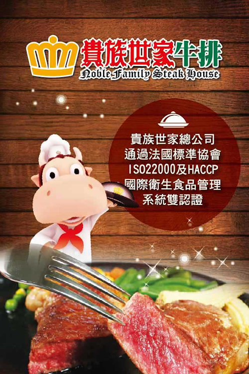 本應用程式為貴族世家牛排專屬行動應用程式,提供各項便利功能供下載使用。