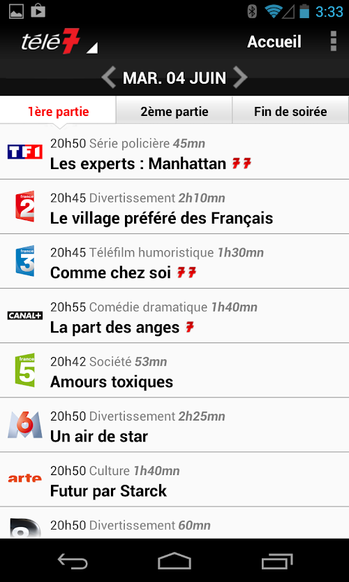 - Go directly to programs broadcast at this time, in the first, second or last part of the evening and complete TV program with more than 170 channels (France 2, Arte, Gulli, Canal +, M6 ...)