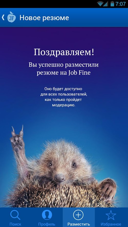 — Создавайте резюме и размещайте его на портале www.jobfine.ru прямо из приложения. Теперь работодатели могут звонить и писать вам!