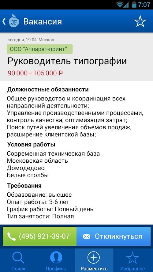 — просматривать подробную информацию о работодателе (в т.ч. контактные данные);
