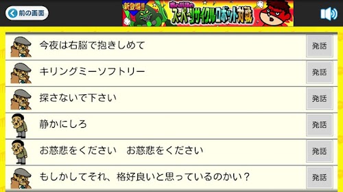 Choosing a previously loaded line will speak on behalf of you, Koizumi Ruichiro, the popular character president of "secret society hawk's claw".