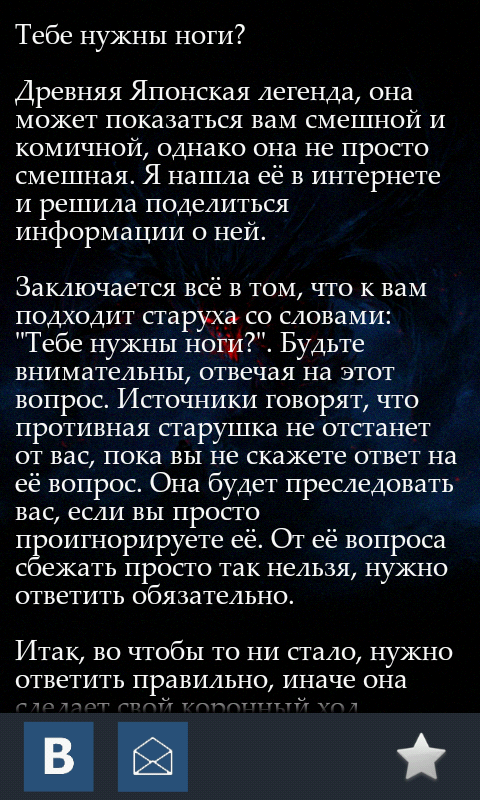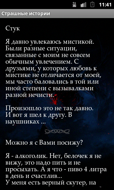 Пугайтесь на здоровье)Adrenalinozavisimym dedicated. Best collection of horror stories, frequent updates. Favorite record, you can add to your favorites, send an email to a friend or share them on your page Vkontakte.