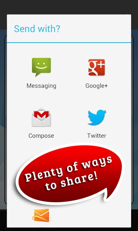♥ Quick and easy: just tap the message and send via text message, email or your favorite social network