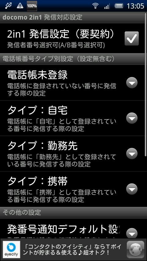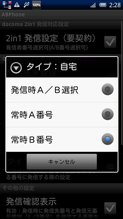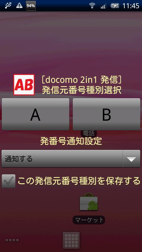 docomoのサービスである「2in1」契約者がAndroidのスマートフォンで音声発信時に、通知する発信者番号をA番号とB番号を切り替える事ができるアプリです。(番号通知制御、マルチナンバー制御用ツール作成中の偶然の産物で、切り離して「2in1」単独で公開します。)