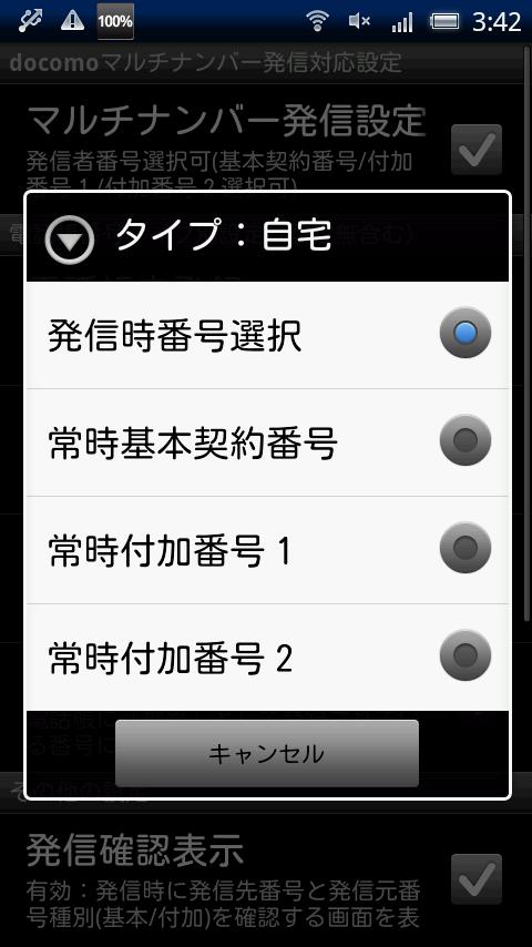 docomoのサービスである「マルチナンバー」契約者がAndroidのスマートフォンで音声発信時に、通知する発信者番号を基本契約番号、付加番号1、付加番号2で切り替える事を可能にするアプリです。(2in1発信対応アプリABPhoneをご覧になったお客様から、一般公開していなかったマルチナンバー用アプリを公開してほしいという要望を受けて公開に踏み切りました。)