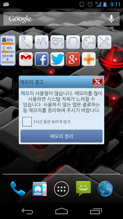 - NotificationBar에서도 메모리, 배터리, 모바일데이터 모니터링과 사용자 설정 앱들을 실행할 수 있음.
