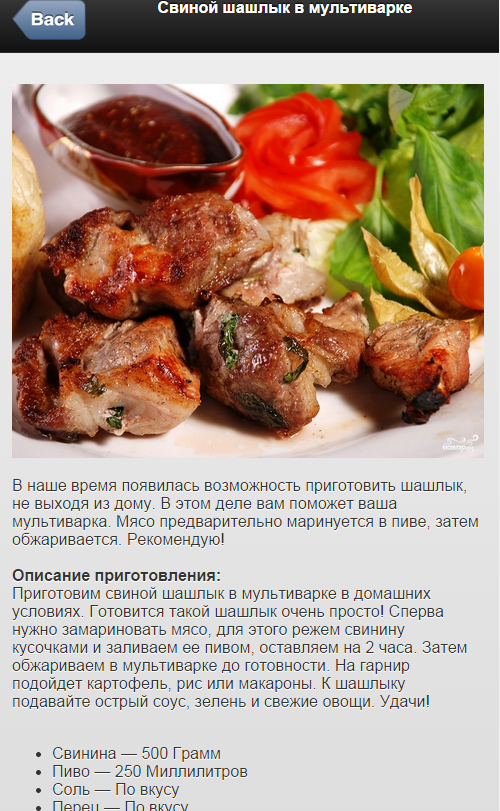 Отличный сборник рецептов шашлыка из разных видов мяса и разных маринадов. Каждый найдет для себя то что ему нравится и какие ингредиенты у него есть. Всем приятного аппетита =) A great collection of recipes from different kinds of kebab meat and different marinades. Everyone will find something that he likes and what ingredients it has. All good appetite =)