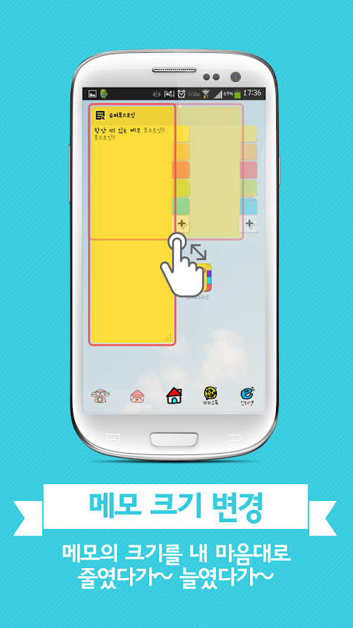 메모 크기 변경이 가능 (오른쪽 하단 모서리 터치)