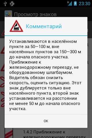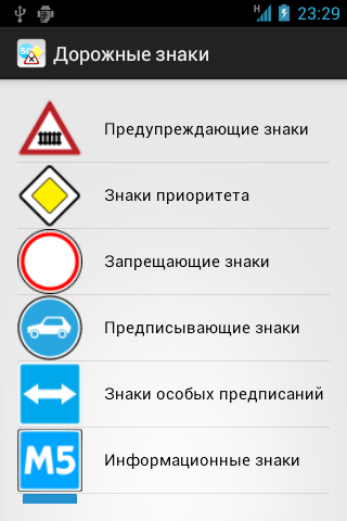If you see an unfamiliar road signs or markings, then simply run the application and select the group you want to see the description of the mark or markings. You can see a detailed description of the sign, or the situations in which use road markings.