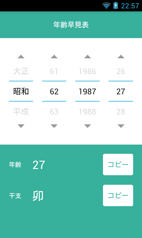また、年齢から和暦・西暦を計算することも可能です。It is an application to calculate the age from the Japanese calendar-year.