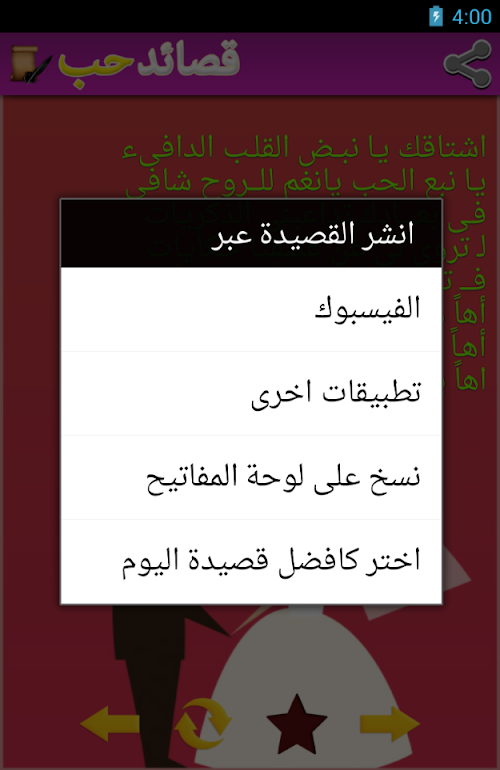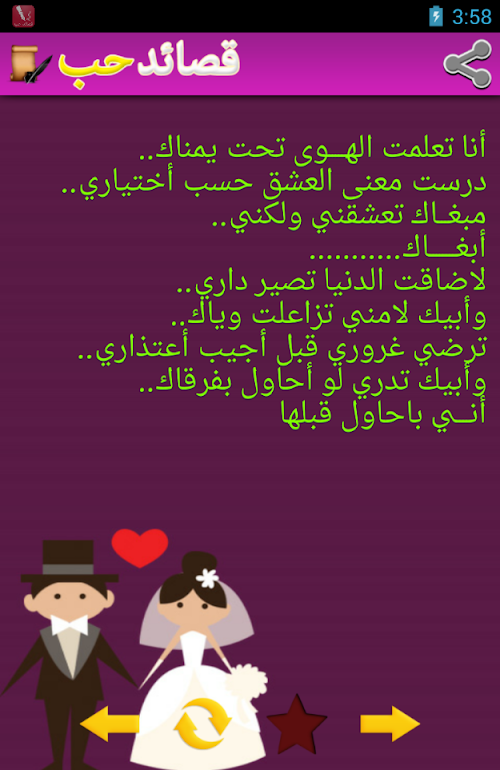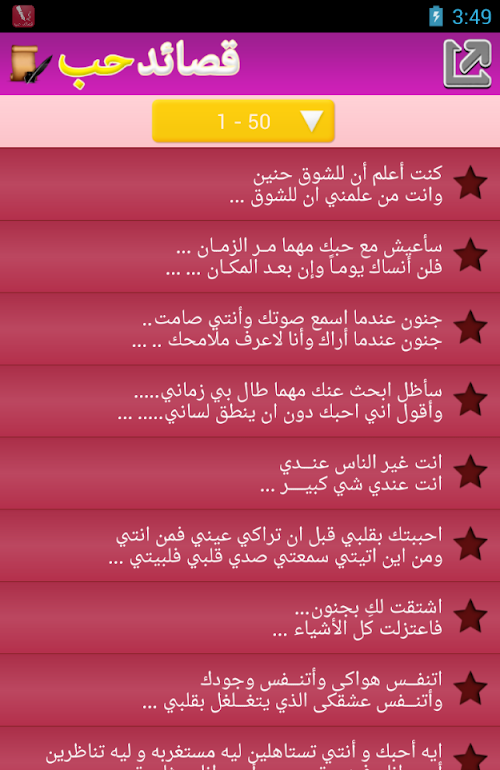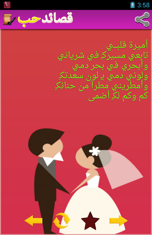 كما يمكنك ان تستعمل القصائد الموجودة في البرنامج كرسائل حب لمن تحبه لان به العديد من كلمات الحب و الرومانسية.