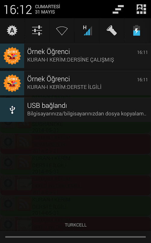 -Öğrencinize ait bir davranış yüklendiğinde cihazınıza bildirim gönderilmesi