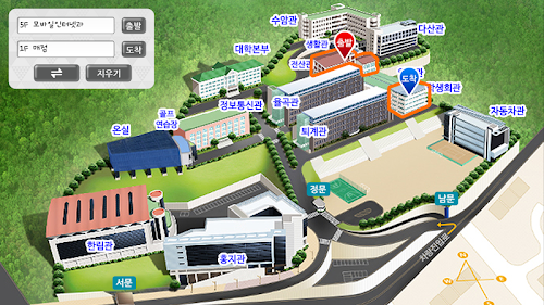 - 캠퍼스 전체 맵에서 검색을 통해 위치 확인이 가능합니다.