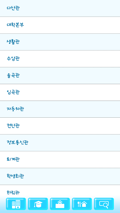 - 13개의 건물과 층으로 위치를 확인하거나, 학과만 나열 되어 있는 학과별