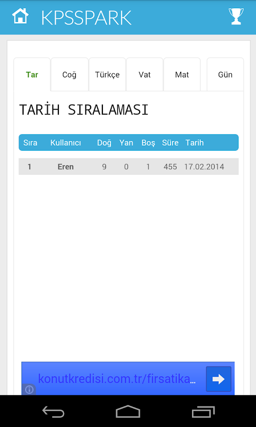 Etiketler: kpss, kpss soru, kpss deneme, kpss tarih, coğrafya, vatandaşlık, türkçe, kpss test, kpss sınav, kpss yarışmaKPSS KPSS Contest Contest interactive application. We KPSS History, Geography, Turkish, Citizenship, Mathematics and Updated Information presents questions of the topics. You have entered all about the course can enter the competition are evaluated and ranked.
