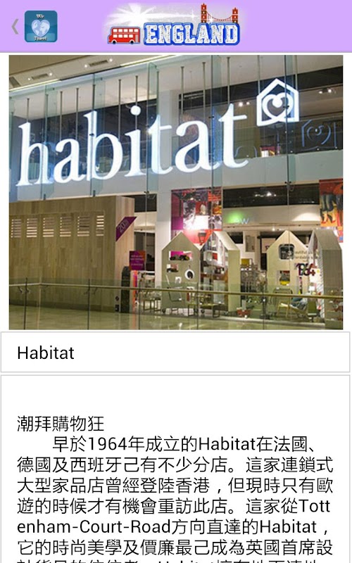 “愛旅足跡-英國篇”是一個介紹英國的旅游資訊終端,就是為了愛去英國的你而設。愛旅足跡系列-即將推出世界各地全攻略,具有特色景點﹑酒店﹑美食﹑購物﹑旅客手冊等,各種知識應有盡有敬請期待﹗更多APP詳情-