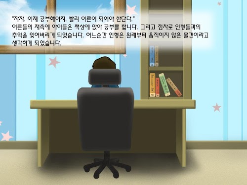 아이들은 인형들과 노느라고 늙지 않고 영원히 어린이로 남을 수가 있었어요.