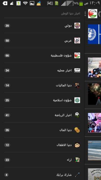 ويضم تطبيق دنيا الوطن العديد من الاقسام الاخبارية, وعند اختيار اي قسم يتم مشاهدة احدث المواضيع الاخبارية والتي سوف يتم عرضها بشكل