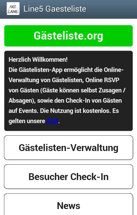 The use of the app is free. Commercial support is available from Line5 (http://www.line5.de). With your PC or Mac, you can always easily manage online managed in the app guest list also, and the corresponding software, see https://gästeliste.org.