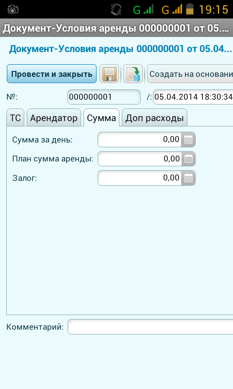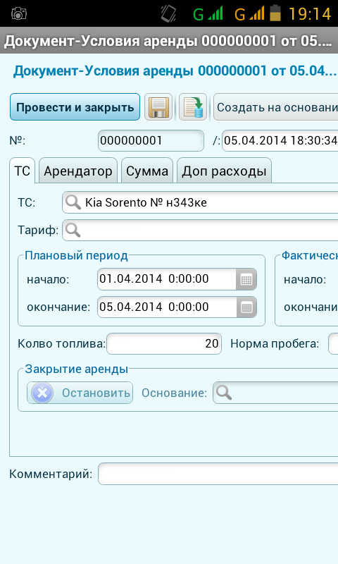 - Создание документов по вводу тс в парк, списание тс, оплата арендатора и т.д.