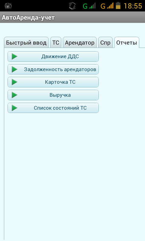 - Отчеты по движение денежных средств, карточка ТС, Выручка