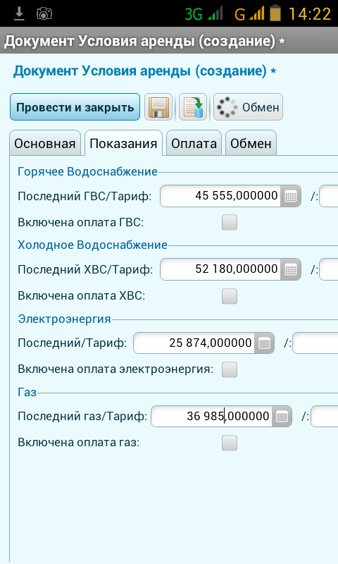 Арендатор будет всегда иметь последние данные по условиям аренды и последние введенные показания.