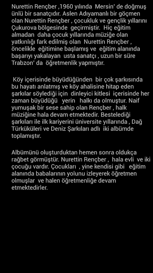 You can find all of the things about Nurettin Reçber. You can listen to his songs, see his photos and the other things about Nurettin Reçber.