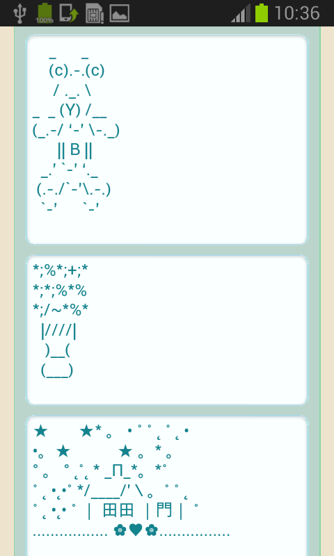 Application for text and names decoration contains a large number of shapes (ascii art) that can be copied anywhere