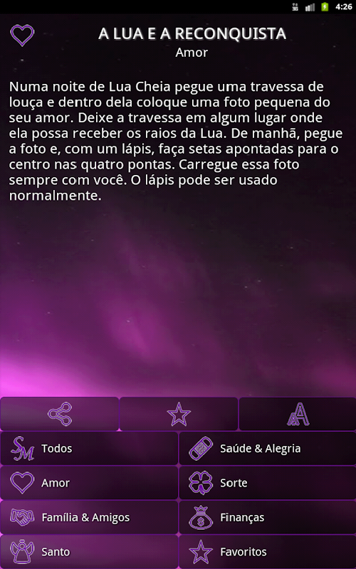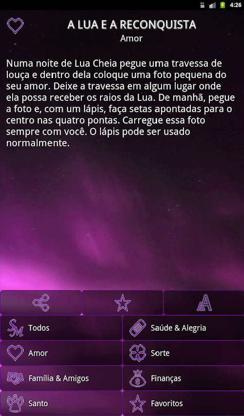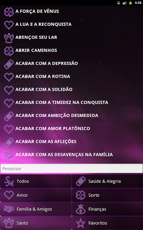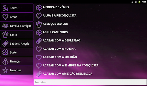 Permite filtrar por categoria, criar uma lista de favoritos, compartilhar via SMS / E-mail / redes sociais, ...A full application of sympathies for many different areas of life:
