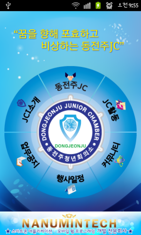 각 로컬JC회원 간의 활발한 소통의 장이 되도록, 로컬 간의 화합의 장이 되도록, 대한민국 1,000만 청년세대의 목소리가 될 수 있도록 본 앱을 개발하였으며 본 앱을 통하여 대한민국의 영광스러운 힘찬 미래와 세계 평화와 인류 번영에 더 큰 역할을 할 수 있는 JC회원이 되시길 기원드립니다.JC Junior Chamber dongjeonju Korea Android APP