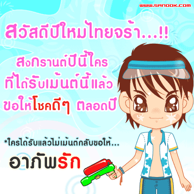 ส่งความสุขเนื่องในเทศกาลสงกรานต์ หรือวันครอบครัว ที่ส่งมอบให้เพื่อนๆ กันกับคำคมสงกรานต์ เอาไว้ส่งความสุขให้เพื่อนผ่าน Social กันไม่ให้ตกเทรนและส่งต่อให้เพื่อน ชวนไปเที่ยว หรืออวยพรกันเนื่องในวันสงกรานต์กันนะจ๊ะ ให้มีความสุขในเทศกาลแห่งความสนุกสนานนี้ เที่ยวกันให้สนุกนะจ๊ะHappy on the festival. Or family day Delivered to friends Songkran with Quotes Happy them to friends via Social keep Trane and back to NYC to visit Songkran Festival or compliment each thread. Happy Festival of fun. I will have fun together