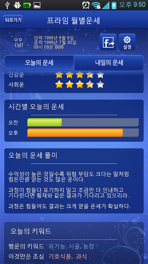 Morning and afternoon fortune is displayed as a graph.