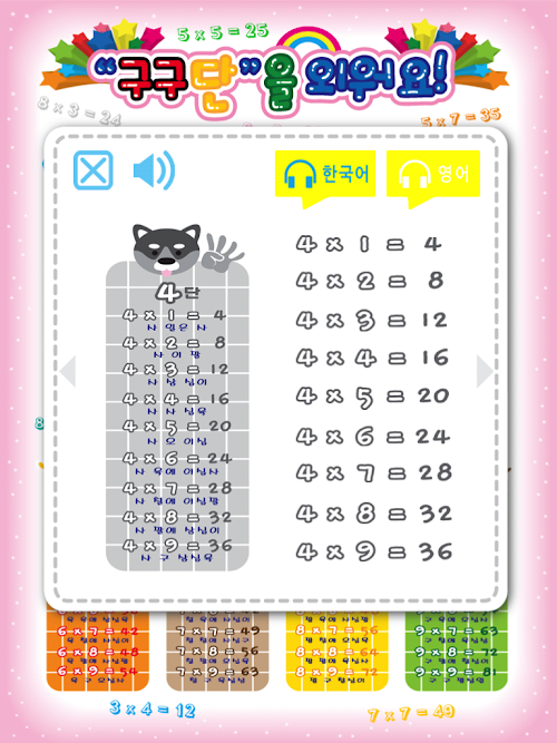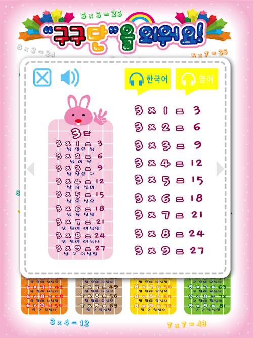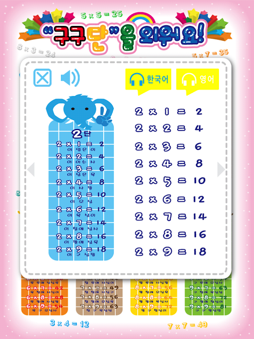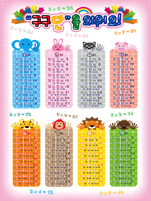 "구구단을 외워요!" 편에서는 2단에서 9단까지 구구단을 소개 하였으며,