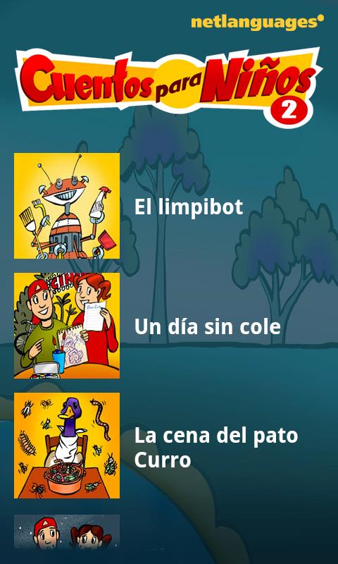 Cuentos para Niños es una amena colección de aplicaciones de lectura, ideal tanto para estudiantes jóvenes de español como para jóvenes hablantes nativos. Cada volumen contiene cuatro originales y entretenidas historias de aventuras de los gemelos Dani y Carla y su mascota mágica, el pato Curro. Las historias están dirigidas a niños y niñas de entre 5 y 10 años y se pueden disfrutar de diferentes maneras: