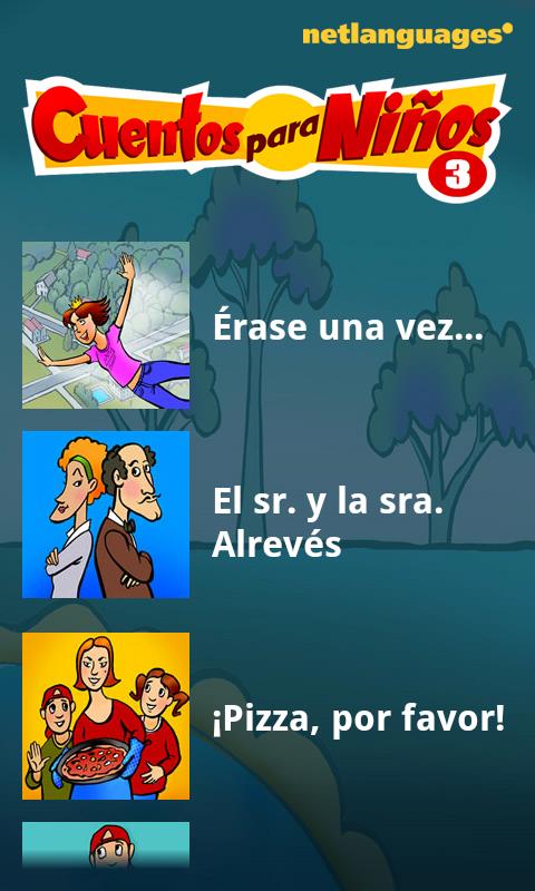 Cuentos para Niños es una amena colección de aplicaciones de lectura, ideal tanto para estudiantes jóvenes de español como para jóvenes hablantes nativos. Cada volumen contiene cuatro originales y entretenidas historias de aventuras de los gemelos Dani y Carla y su mascota mágica, el pato Curro. Las historias están dirigidas a niños y niñas de entre 5 y 10 años y se pueden disfrutar de diferentes maneras: