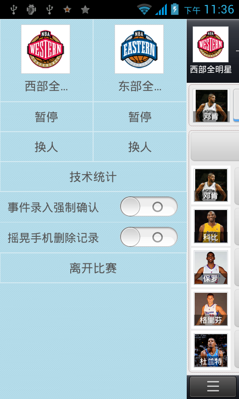 4 。比赛过程中可以自由的暂停,或者替换玩家。