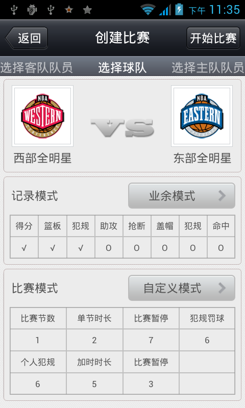 3。比赛支持自定义比赛规则,每次多少节,每节多少分钟,