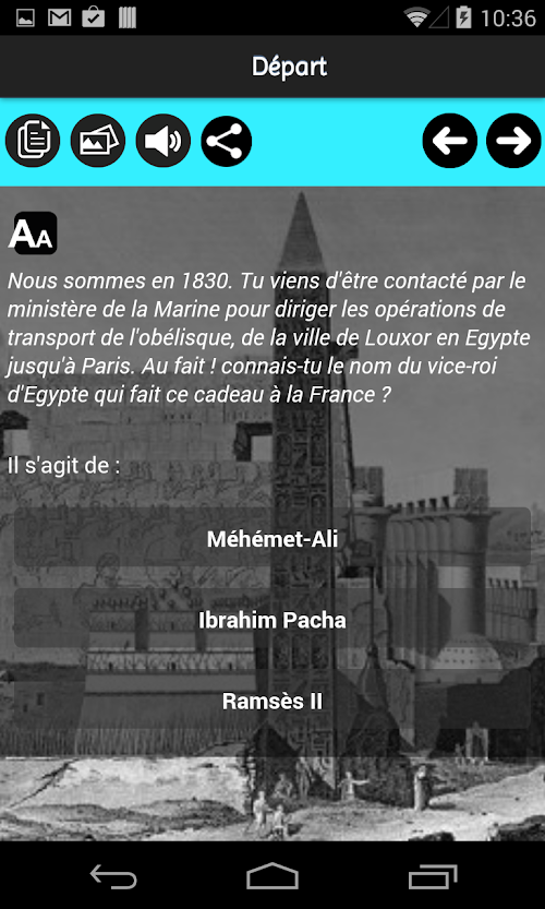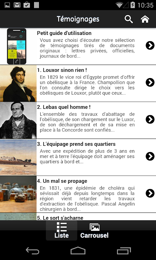 The official application dedicated to the exhibition "The Journey of the obelisk" from February 12 to July 6, 2014 submitted to the National Maritime Museum invites you to travel back in time. At the heart of the exhibition to enrich your visit, witnesses travel tell you this incredible adventure through many audio stories.